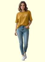 Refresh your casual wardrobe with this stylish Women’s Mustard Cotton Quote Print Oversized T-Shirt. Designed for everyday comfort and effortless style, this tee features a minimal text print that adds a modern and classy touch. The soft Lycra fabric and relaxed oversized fit make it perfect for all-day wear, whether you’re heading out with friends, running errands, or enjoying a laid-back day.