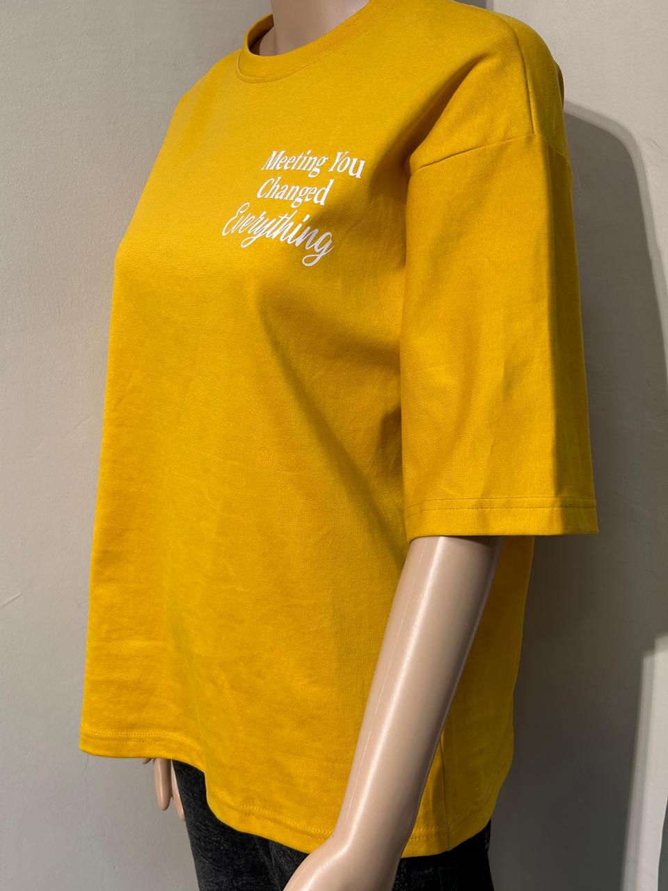 Refresh your casual wardrobe with this stylish Women’s Mustard Cotton Quote Print Oversized T-Shirt. Designed for everyday comfort and effortless style, this tee features a minimal text print that adds a modern and classy touch. The soft Lycra fabric and relaxed oversized fit make it perfect for all-day wear, whether you’re heading out with friends, running errands, or enjoying a laid-back day.